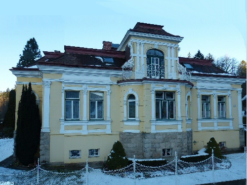 In bester südseitiger Villenlage, am Rande des Stadtzentrums, 250 m vom Hauptplatz, an einem Sackgassenende auf einem ebenen Grundstück von 1.124 m² befindet sich diese vollunterkellerte, um die Jahrhundertwende errichtete Jugendstilvilla. Sie hat Kanal-und Ortswasseranschluß, Fernheizung + alternativ Feststoffzentralheizung, Kachelofen, Solaranlage. Die verbaute Fläche beträgt rd. 334 m², Wohnfläche rd. 346 m², Gesamtnutzfläche rd. 570 m². Sie besteht aus 3 Etagen, die durch ein nordseitiges Stiegenhaus mit Ausgang in den Garten verbunden sind, der Haupteingang befindet sich in der über eine Granitstiege erreichbaren Beletage, wo auch die südseitig ausgerichteten Haupträume liegen. Die Villa besitzt 9 Zimmer, 3 Bäder, 3 WC, 3 Küchen, div. Nebenräume, Balkon, Veranda, im Untergeschoß neben einem Hobbyraum noch Heizraum, Werkstatt, Lager- u. Wirtschaftsräume, eine Sauna und eine Infrarotkabine. Der Zustand ist optisch großteils original, technisch renoviert, Kunststofffenster, hauptsächlich Originalparkettböden. Das Haus wird großteils möbliert übergeben, das Grundstück hat die Widmung Bauland-Wohngebiet, HWBRef,SK 274,07, fGEE,SK 3,40, am Grund befindet sich noch eine Doppelgarage, ein Salettl, eine Gerätehütte und ein Gewächshaus, Eignung als Groß/Mehrfamilienhaus, Wohnen+Büro/Praxis.., lastenfreier Kaufpreis € 750.000.- .